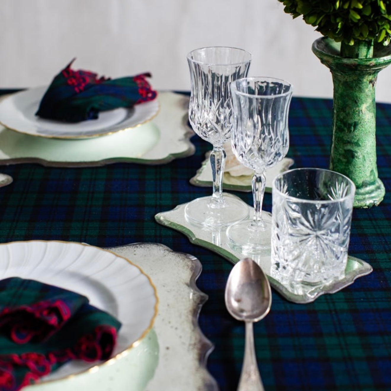 Elegant glass coasters embellished with a faceted profile. Ideal for setting your festive table or a lavishly decorated table. They enhance a meticulously illuminated table setting.