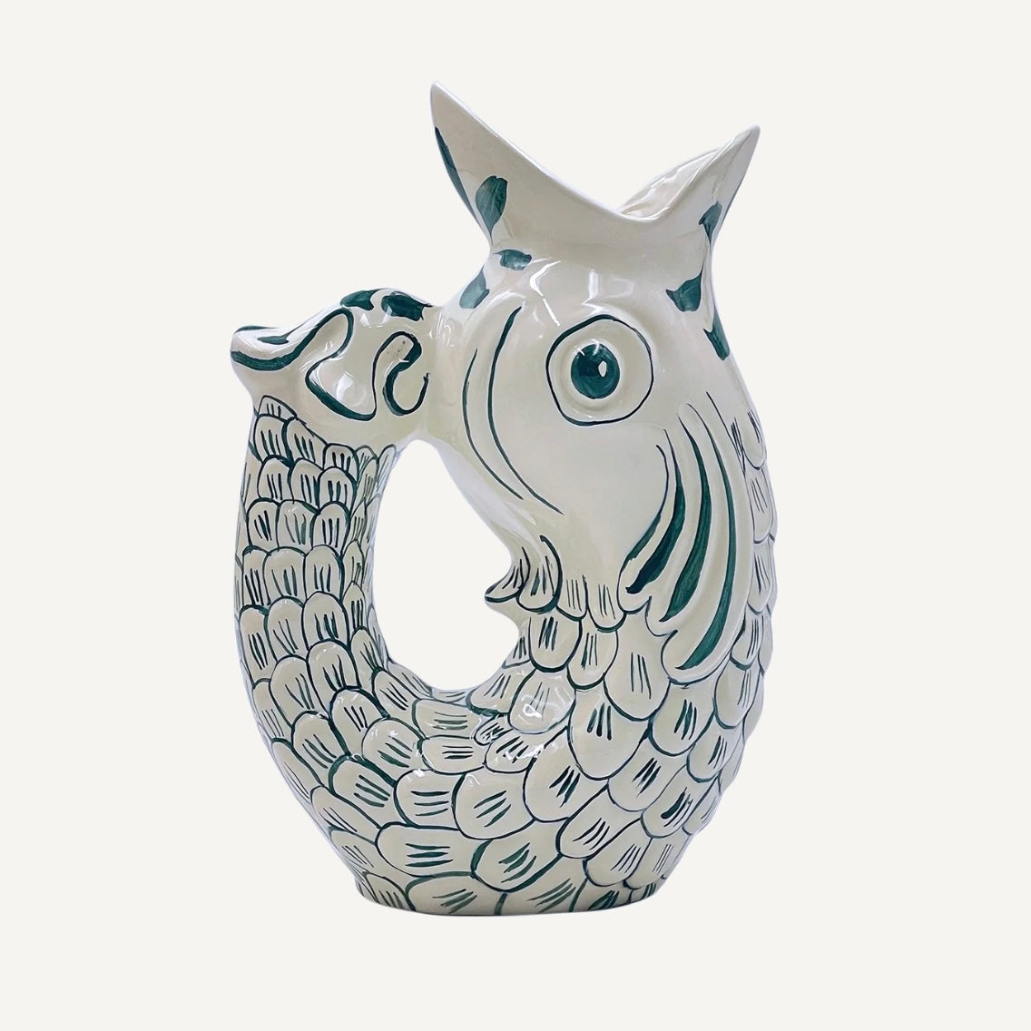 DETAILS: Our Glug Glug jugs are so-called for the delightful gurgling noise they make when poured. With details hand-painted in sunshiney colours, they’re shaped like the leaping fish caught on Maltese fishermen’s boats – though they also remind us of the carved creatures in Villa Bologna’s Dolphin Pond.